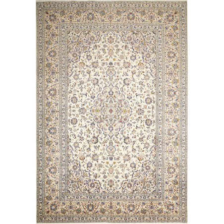Dal punto di vista estetico, i tappeti Kashan sono celebri per i motivi floreali ricchi e raffinati, i medaglioni centrali armoniosi e le cornici elaborate. I colori predominanti sono il rosso rubino, il blu intenso e l’avorio, combinati per creare tappeti eleganti e luminosi, capaci di valorizzare qualsiasi ambiente, dal classico al moderno. La densità dell’annodatura conferisce ai disegni una precisione straordinaria, rendendo ogni tappeto un vero e proprio capolavoro tessile.